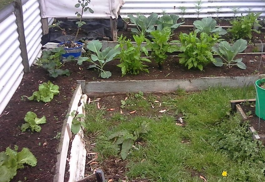 Here is the same garden just over 2 weeks later. The lettuce, strawberries, cabbage and spinach are growing at a great steady rate