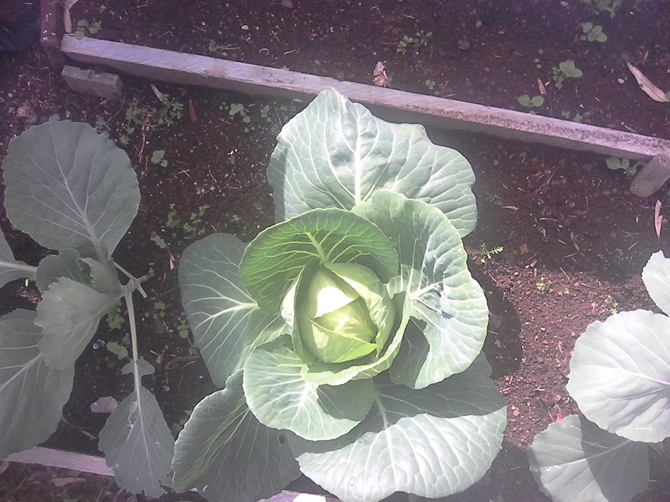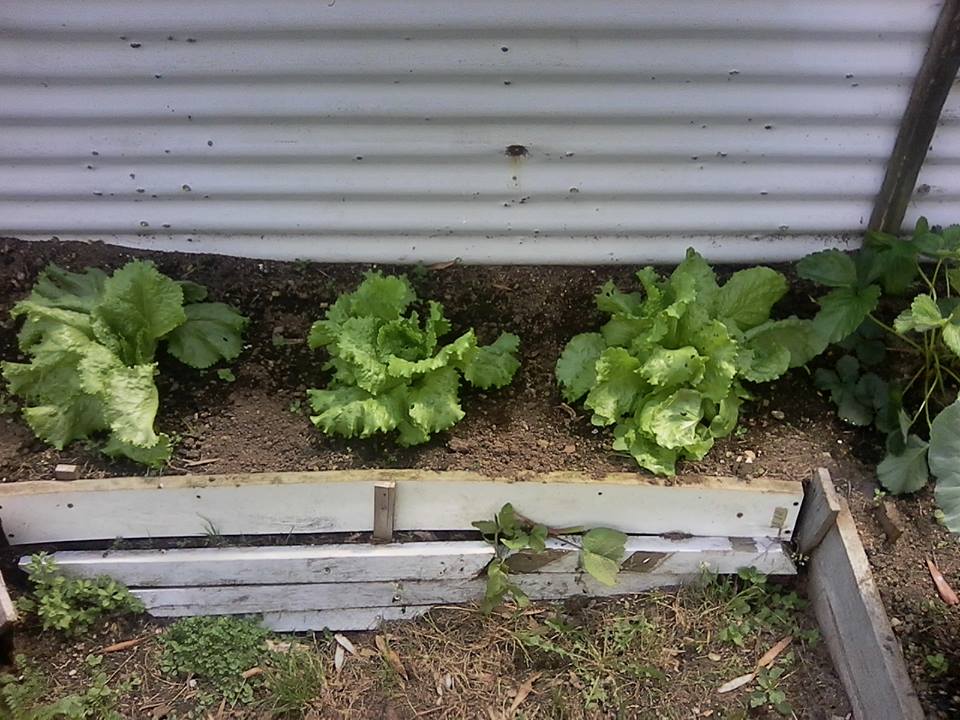 Here is the same garden one year later. New lettuce, strawberries and cabbage also some perennial spinach and a rose plant