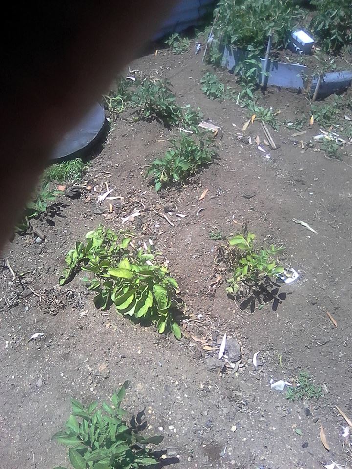These are the same potatoes and spinich watered with plain water notice the loss in colour as the leaves fade