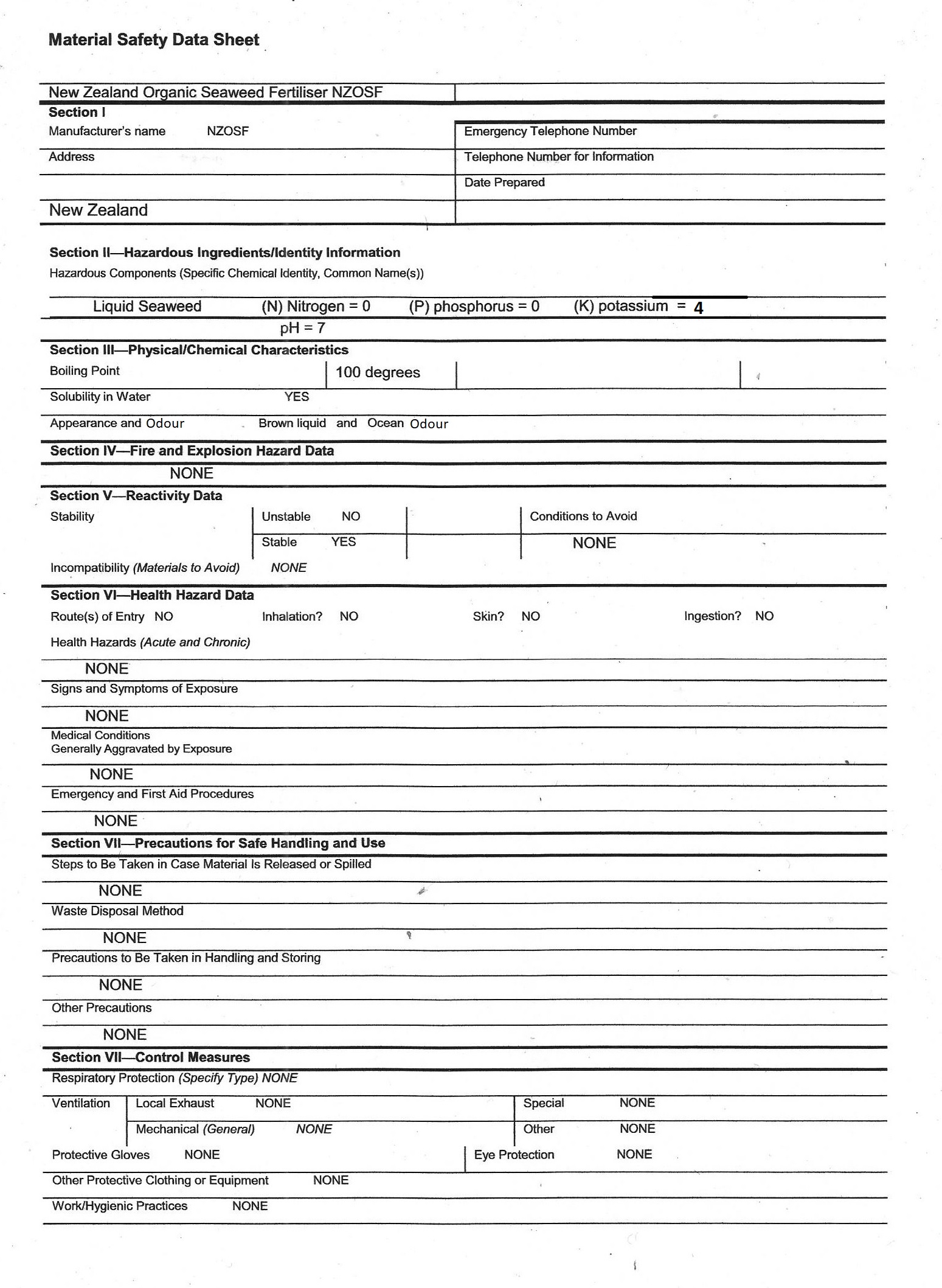 New Zealand Organic Seaweed Fertiliser (nzosf tm), is trademark registered